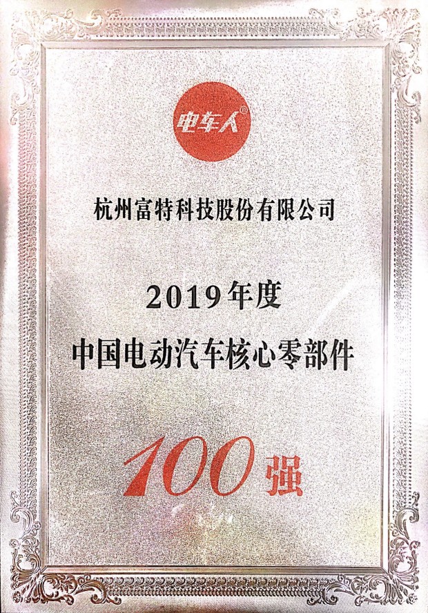 富特科技再獲“中國電動汽車核心零部件100強”